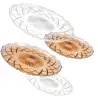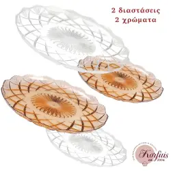 Διάφανος δίσκος πλαστικός βαθύς σκαλιστός. Διατίθεται σε 2 διαστάσεις 25cm και 28cm και δύο χρωματισμούς:διάφανο και φιμέ. Ποσότητα παραγγελίας από 1kgr.