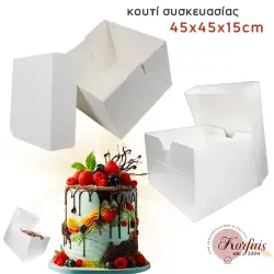 Κουτί συσκευασίας και μεταφοράς τούρτας, τετράγωνο, που διατίθεται με διαστάσεις 45x45x15cm.