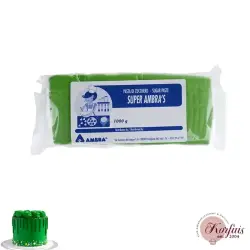 Ζαχαρόπαστα χρωματιστή souper ambras, σε συσκευασία 1 kgr. Διατίθεται σε 10 χρώματα: Κόκκινο, κίτρινο, πράσινο, μαύρο, μπλε, ροζ, γαλάζιο, φουξ, λιλά και λευκό.