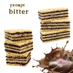 Γκοφρέτα γεμιστή bitter, διαθέσιμη σε 2 σχήματα:τετράγωνο και μακρόστενο.