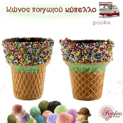 Κύπελλο παγωτού, σε συσκευασία 40 τεμαχίων. Το κύπελλο είναι επικαλυμμένο εσωτερικά-εξωτερικά με σοκολάτα και πασπαλισμένο με πολύχρωμη τρούφα.
