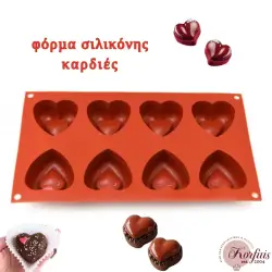 Φόρμα σιλικόνης με 8 θήκες για καρδιές.Οι διαστάσεις της κάθε θήκης είναι 6,4x6,2x3,2cm με χωρητικότητα 72ml.