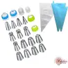 Σετ με 15 διαφορετικές μύτες για κορνέ, 34 σακούλες κορνέ και 6 αντάπτορες για κορνέ.