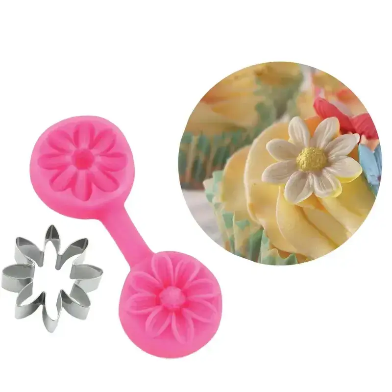 Καλούπι σιλικόνης και κουπάτ μαργαρίτα, για ζαχαρόπαστα.Διαστάσεις 3cm.
