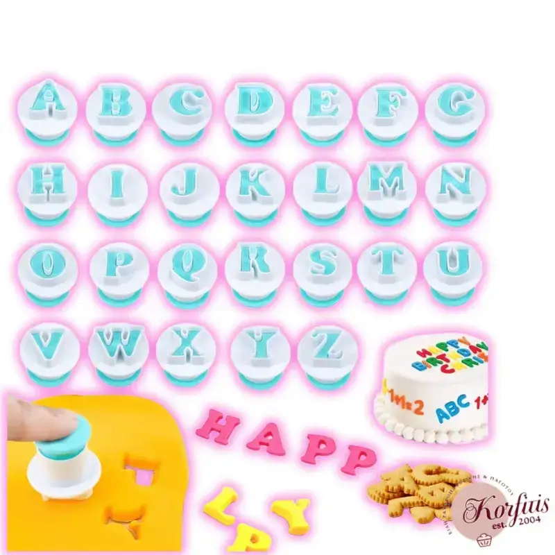 Κουπάτ πλαστικά αγγλικό αλφάβητο, για ζαχαρόπαστα. Διαστάσεις γραμμάτων 2,5cm.