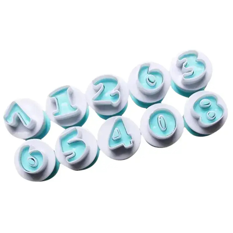 Κουπάτ πλαστικά αριθμοί (0-9), για ζαχαρόπαστα. Διαστάσεις αριθμών 2,5cm.