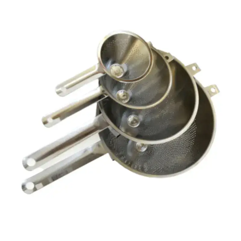 Σουρωτήρι κωνικό με λαβή. Διατίθεται σε 4 νούμερα (διάμετρος σε cm): Νο10, No14, No18 και Νο23.